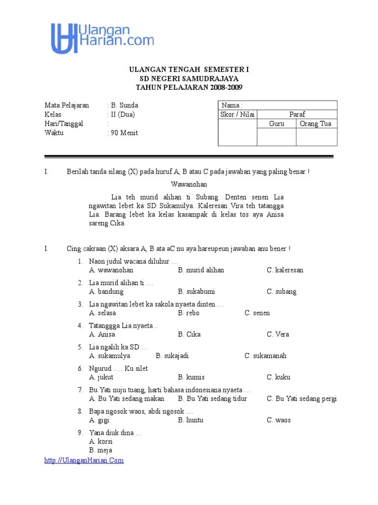 Soal Pts Bahasa Sunda Kelas 2 Semester 1 - 1 / Soal pts bahasa sunda kelas 4 kurtilas semester 1 memuat soal pilihan berganda sebanyak 24 soal dan 2.